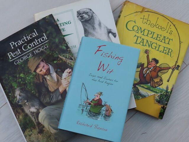 持って行ったのは、一番上の青い本です。この本は義父の遺品の1つで、釣りに関するジョークをまとめたものです。これなら、しばらく飽きないでしょう