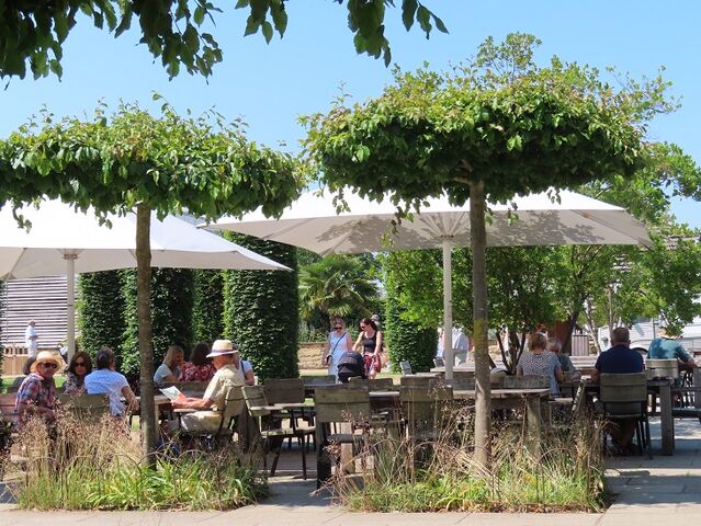いつも、庭園を歩く前に、まずは、庭園内のカフェでコーヒーを飲むのが習慣になっています。空気がフレッシュなので、外のテーブル席が人気があります。