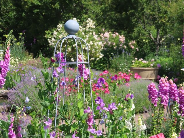 スイートピーとジギタリスがあちこちに咲いていて、可憐でした。こういう支柱は、コテージガーデンの雰囲気が出ていいですよね