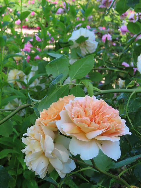 こういうところへ来ると、どのバラが一番好きか、夫と話すのですが、いつもだいたい、「薄オレンジ色のバラ」で意見が一致します