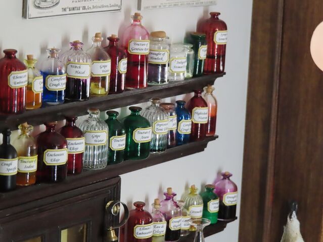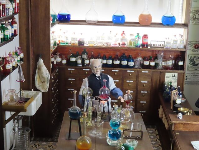 これは薬局でしょうか。フラスコとか瓶とか、細かすぎます~